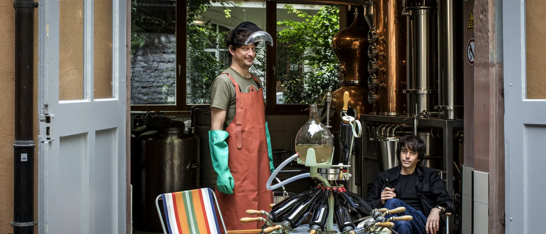 Geführt wird die Stadtbrennerei, in deren Räumlichkeiten sich früher eine Kutschenremise und später ein Gymnastikstudio befanden, von den Brüdern Tobias und David Buser. Ihre Familie ist bereits in fünfter Generation eng mit diesem mehrstöckigen Haus im Kleinbasel nahe der ehemaligen Stadtmauer verbunden. Die Brennerei konnte Ende 2017 zum ersten Mal in Betrieb genommen werden, als die bürokratischen Hürden überwunden und alle Auflagen erfüllt waren.