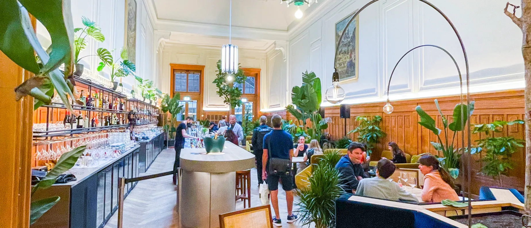Du sprichst die neun Meter hohen denkmalgeschützten Räumlichkeiten mit den schmucken Stuckaturen an, welche aufwendig renoviert wurden und nun mit sieben Meter hohen Bäumen und verschiedensten Pflanzen gesäumt sind. Da lässt es sich definitiv verweilen und geniessen!