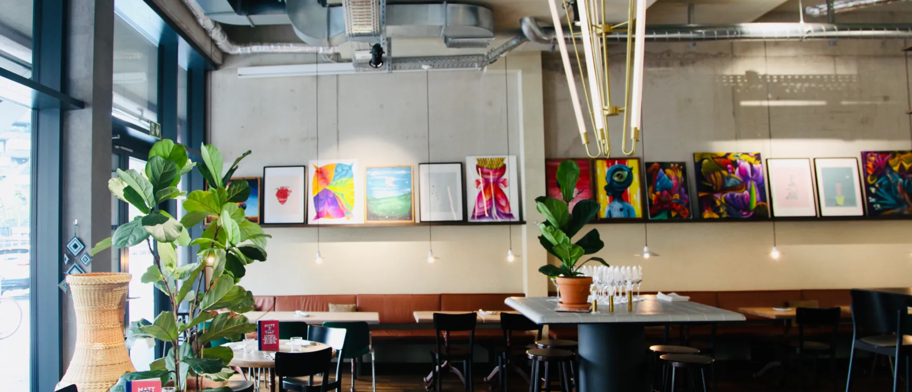 Noch bis zum 27. November versprühen farbenfrohe, verspielte und einzigartige Kunstwerke hispanischen Charme in der Brewery & Kitchen von Matt & Elly im Erlenmatt. Drei Künstlerinnen und Künstler von NuAm Art Basel – Hilda Beriain aus Spanien, Mau Pavon aus Argentinien und Pablo Canelas aus Bolivien – stellen ihre Werke aus und lassen deinen Blick über den Tellerrand hinaus und deine Gedanken in die Ferne schweifen.
