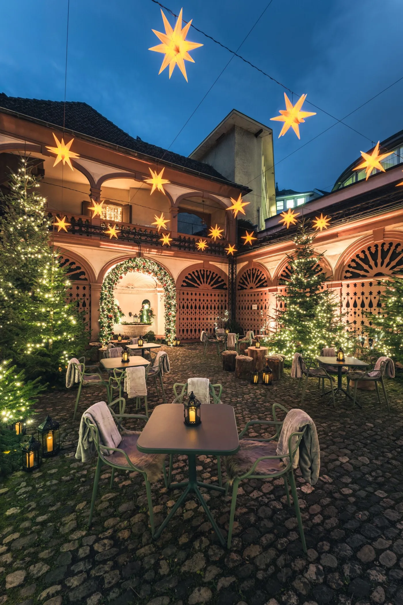 Insgesamt zwölf Zauberhöfe gibt es bis zum 23. Dezember in Basel zu entdecken. Sie alle haben sich in besinnliche Weihnachtsoasen verwandelt und bieten ein abwechslungsreiches Angebot an Kulinarik und Programm.