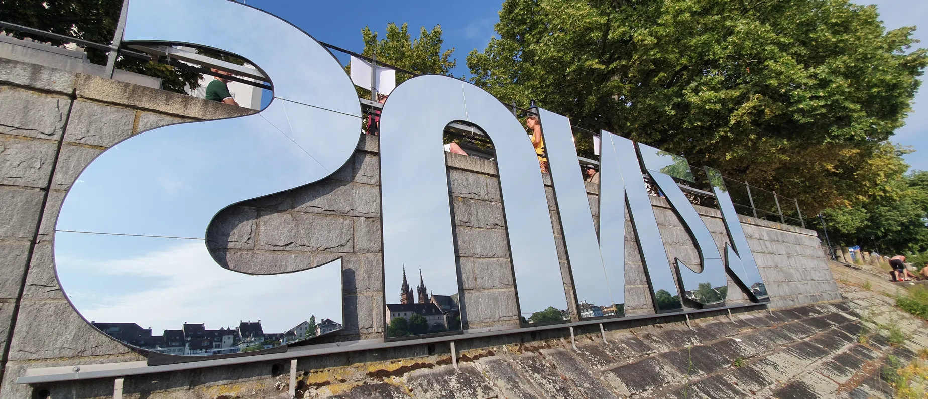 Es ist eine Installation des Basler Künstlers Onorio Mansutti, stattliche 10 x 2,5 Meter gross, quasi der Hollywood-Schriftzug von Basel. Und was soll das Ganze bedeuten? «SUN21», steht da in Spiegelschrift. Um das Ganze lesen zu können, empfiehlt sich die Münsterplattform. Und zwar abends zwischen 19 und 20 Uhr. Bei geringem Wellengang kannst du die Reflexion der Buchstaben im Wasser entziffern.